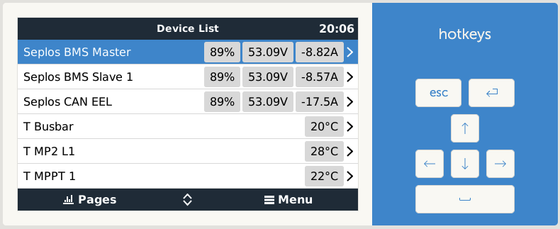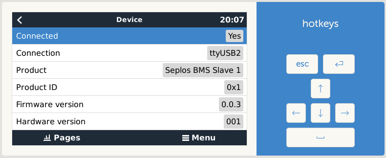 Once installed and running, the dbus-seplos is shown in the Venus device beside the CAN driver, which handles all active topics. dbus-seplos does not write or actively change values. Just transferring BMS data to dbus.